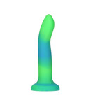 This stunning glow-in-the-dark dildo is poured in layers of brightly coloured, glow-in-the-dark silicone. It has an angled head for G-spot or prostate stimulation, and a smooth shaft with a bendable, posable core. The flared base ensures that the dildo is safe for anal insertion, while the built-in suction cup allows it to be used in an O-ring strap-on harness or stuck to a smooth surface for hands-free play.