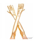 These opera-length metallic gloves by Music Legs come in black, gold, red, and silver.