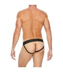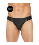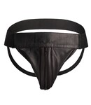 Enclose the most important member of the household in this soft PU leather Jock that clings wickedly to your junk and immediately draws the eyes, beckoning your playmate towards your groin. This beautifully designed leather jockstrap comes with an elastic waistband for a perfect fit and includes a functional zipper along the pouch for easy access. This jockstrap is guaranteed to accentuate all the right areas. The jockstrap comes in size S/M and L/XL.