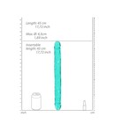 This model stands 17.7" (45 cm) tall including the suction cup, has an insertable length of 17.7" (45 cm) and has a girth of 1.7" (4.3 cm).
