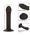 The gently curved tip and plump penis head are sure to hit just the right spot every time. The flanged base has a sturdy suction cup that can be used in a harness or mounted to a flat surface for sensation hands-free fun.