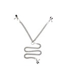 This trio of broad tip adjustable clamps are connected by a Y-style heavy-duty, nickel jewel chain. The chain connecting the central clit clamp can be detached. The clamps are adjustable using the handy thumb screws, and are equipped with rubber tips to improve grip.
