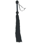 With stretchy but durable natural latex rubber falls and an easy-to-grip handle, this snappy flogger is fun to wield. The grippy texture of the rubber can yield a sharp, pinching sensation in snappy strikes, but will thud in slower blows.